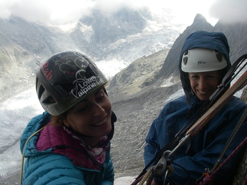 Días antes, en el Refugio, pregunté a Martín Elías que vía me recomendaba. Él nos contó que la cima de la Aiguille de la République era del tamaño de la mesa. Desde ese momento quise estar allí. Sentada a horcajadas a 3305m con vistas al Dru y a las Grandes Jorases, que parecerían casi a la misma altura.