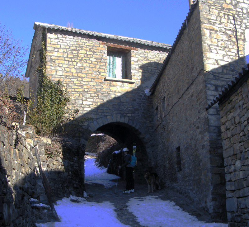 Acumuer es un pueblo solitario situado en un valle también solitario. Lejos de los pueblos turísticos del Pirineo. Conserva un encanto añejo, casas de piedra y madera unidas por una calzada también de piedra salida de otras épocas, arcos, fuentes y una iglesia románica son sus joyas arquitectónicas. Lo más genuino, “la cárcel pública”, pequeña habitación con un teléfono que no necesita monedas, donde los habitantes del pueblo pueden comunicarse con el exterior. Eso sí, según se lee en el cartel “No hay que excederse en el tiempo”. Ese consejo ya me lo daba mi abuela, que en paz descanse, cuando era niña. Había que ahorrar.