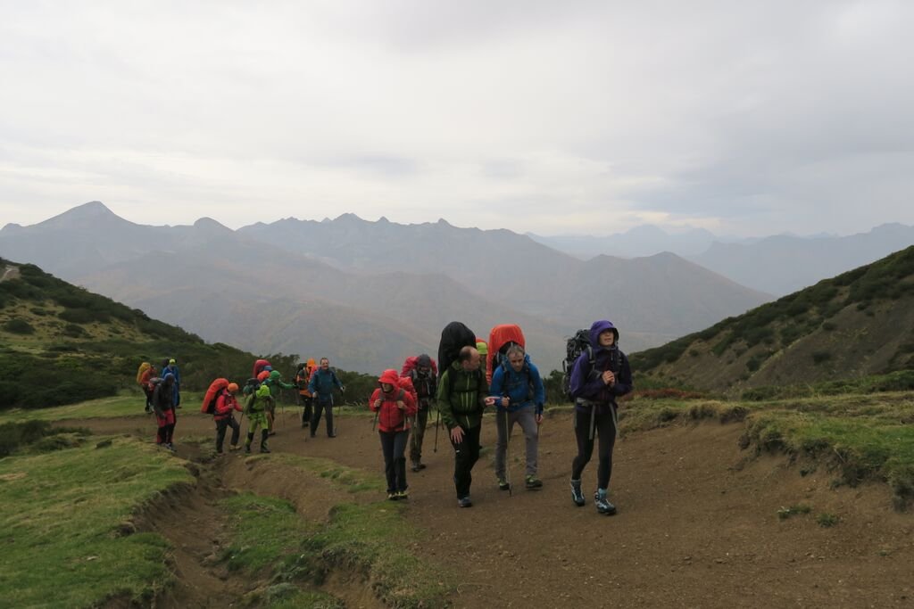 Luego sales a las verdes praderas de los Picus y descubres que el cielo se ha tornado en un gris plata. Y las gotitas, primero ligeras y más tarde pesadas, caen sobre nosotros suavemente. Nada nos cambia el ánimo, y seguimos andando con júbilo.