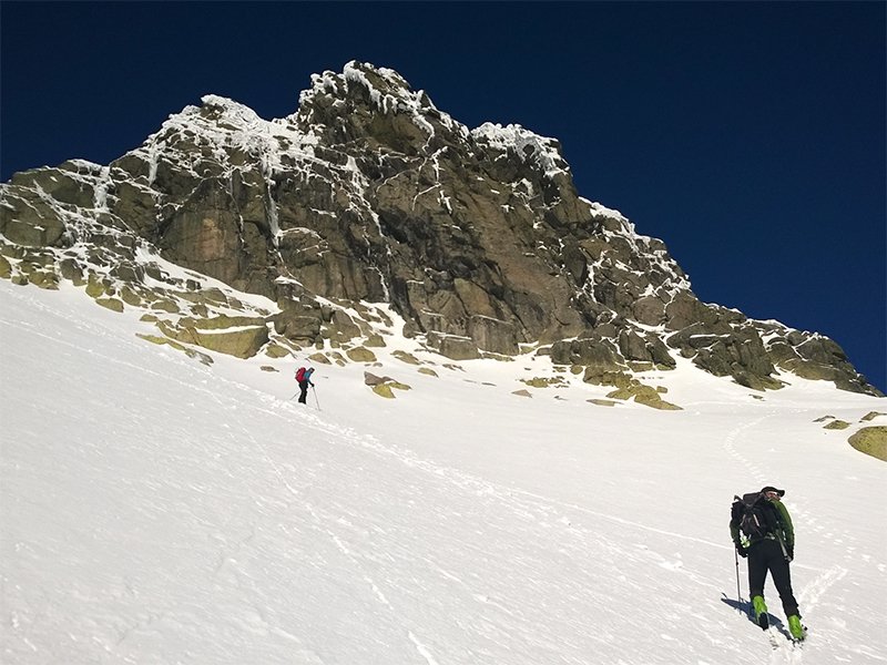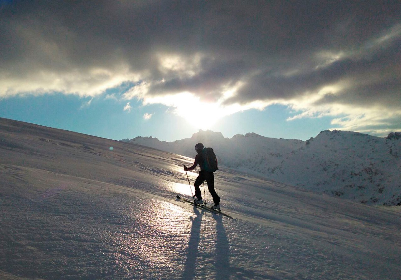 Para quitarme el sabor amargo nos fuimos a esquiar. Había que aprovechar la nevada nocturna. Tras la acertada frase: “Esto es solo hoy”. Sobre todo en Gredos que la nieve se transforma en un abrir y cerrar de ojos. Tomamos rumbo a la Laguna, subimos y bajamos por la directa del Morezón. Despegamos desde una cumbre acornisada petada de nieve y el resultado fue una de las bajadas más bellas de mi vida. Hasta puede dibujar tres bonitos giros en un lienzo impoluto.
