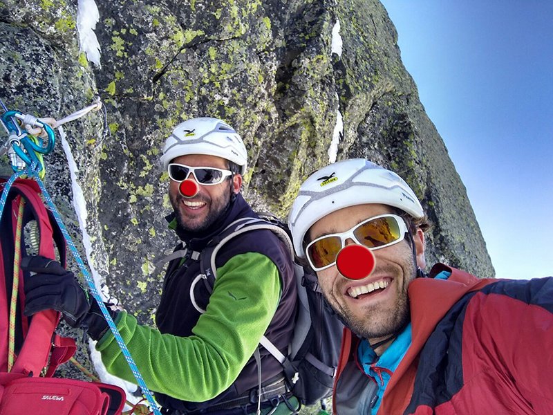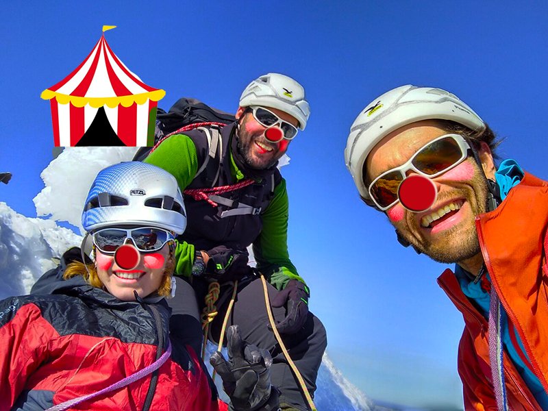 En el cuarto acto hicieron su entraron triunfal los payasos. La risa, alimento del alma es lo mejor para concluir un espectáculo singular. Éramos tres, Rodi, Fofo y Fofita, una servidora. Al ritmo de “Siempre viajar, siempre cambiar, ya ven a ver el Circo…” Nos dirigíamos alegremente al Almanzor. Mientras Rodi abría huella, Fofo y Fofita se metían con él. “¿Cuánto queda?” le decía Fofita. Se quejaban todo el rato como hacen los payasos. Fofo se entretenía vacilando a Rodi por cualquier cosa: «brazos de alambre, con ese patín normal que no te hundas». Y Rodi impasible, no se enteraba de nada, o no quería enterarse y seguía a la suyo. Abriendo una huella imposible y gritando desde unas curvas más arriba a los otros dos desdichados :“Vamos al diedro Esteras, que no te enteras”.