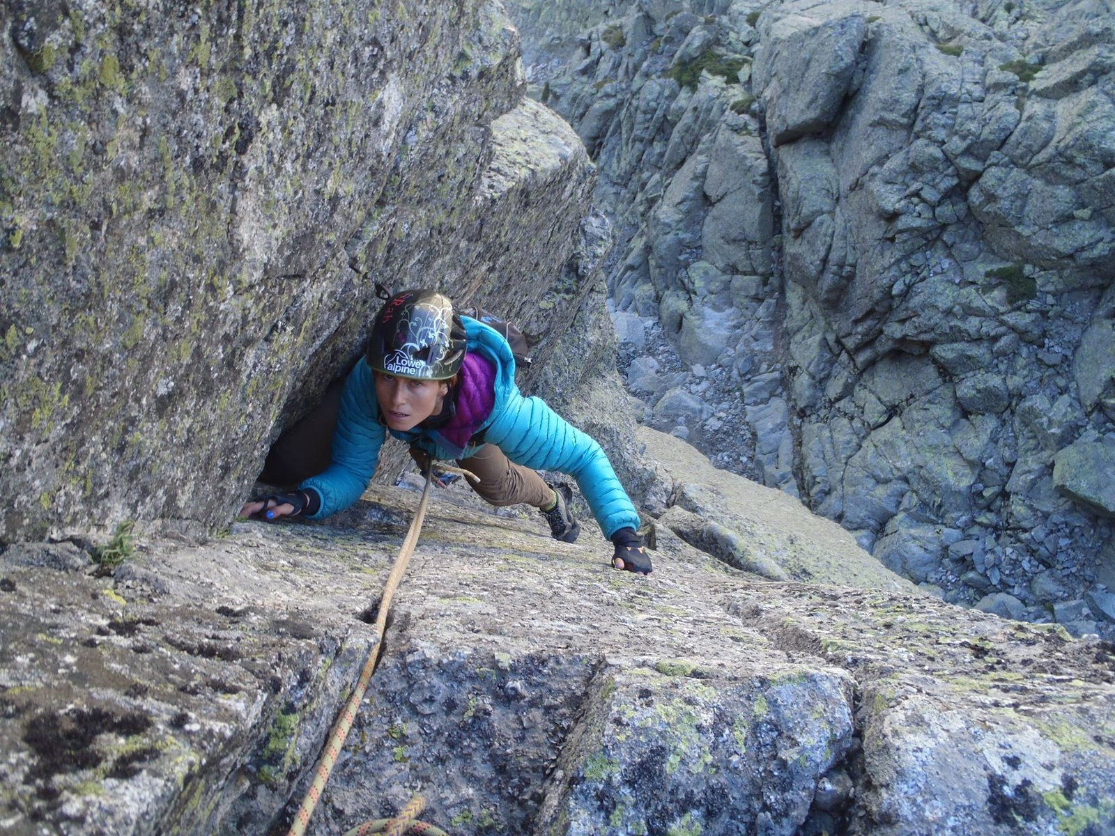 Los colores se mezclan y se funden con la roca. El verde lo abarca todo, un verde intenso casi radiactivo, un verde que solo se puede contemplar en las rocas graníticas de Galayos.