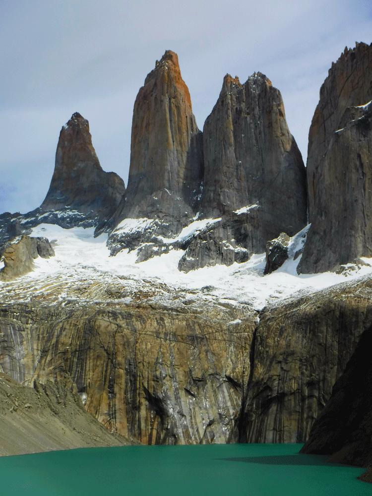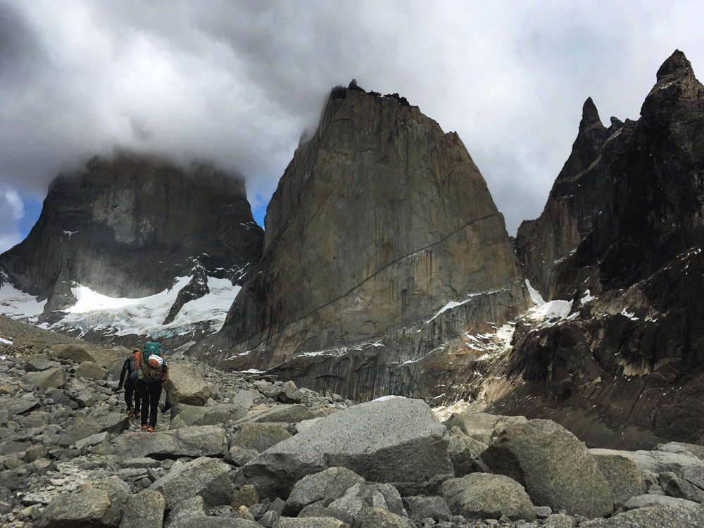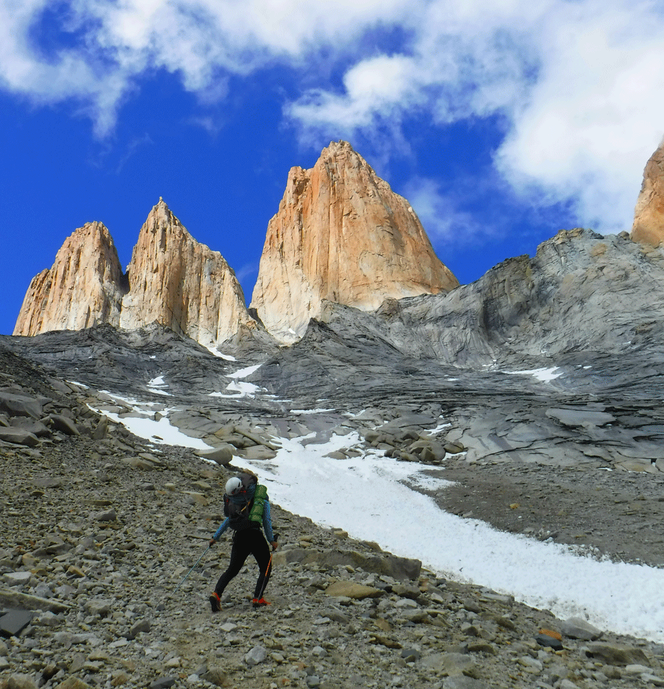 Y así comienza esta historia, sintiendo ese estruendo que resopla con fuerza en mi interior. Y veo las Torres del Paine, y lo entiendo, entiendo todo. Es la primera vez que me pongo bajo los pies de semejantes moles rocosas. Me impresionan en lo más profundo de mí ser. Son reales y estoy en la Patagonia, debemos ser precavidos. Y lo entiendo… Y mi parte tranquila lo acepta: “Calma, céntrate en la Torre Norte» me digo a mi misma. Ahora toca mirar la meteo y estudiar la ruta Monzino hasta casi aprenderla de memoria. Es un camino más accesible, más trepindanga y con más certeza de cumbre. “Mejor una que ninguna” me dicen. Y lo entiendo, y me guardo los gritos dentro.