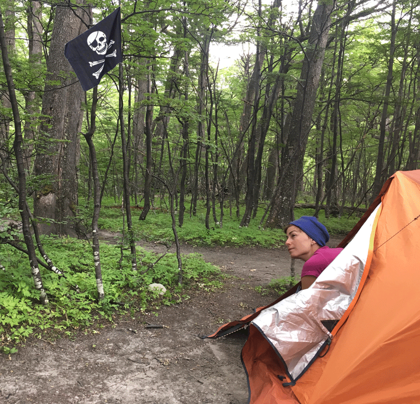 Bajamos de nuevo al refugio chileno para portear hasta nuestra casita del bosque, el campamento japonés. En él me sentía como Peter Pan en el reino de Nunca jamás. Los chiquillos que allí nos juntamos izamos la bandera pirata. soñábamos a voces, compartíamos todo, hasta las heridas, y nos hermanábamos incondicionalmente. Seres especiales, salvajes, bellos, libres, artistas, amantes de cuanto nos rodeaba. Con esa felicidad radiante que solo te dan los grandes espacios naturales.